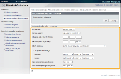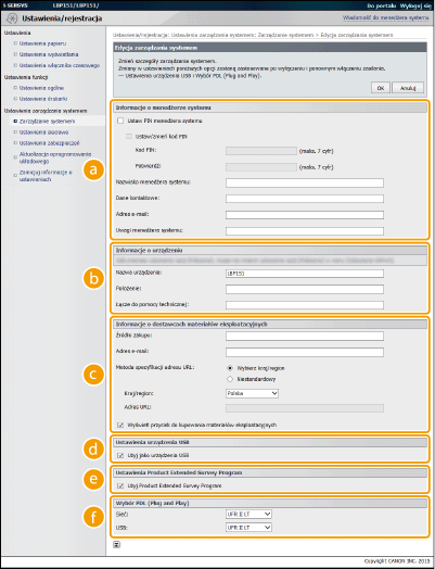 Ustawienia pozyskiwania informacji o zarządzaniu drukarką