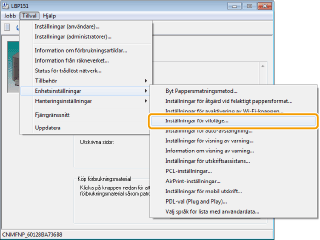 I viloläget reduceras den ström som enheten förbrukar genom att en del av de interna funktionerna stängs av. Du kan ange att enheten ska gå in i viloläge när den inte har använts under en viss tidsperiod. Den fabriksinställda perioden innan enheten går in i viloläge är 1 minut. Vi rekommenderar att denna inställning används för att spara ström. Om du vill ändra den förinställda tidsperioden använder du skrivarstatusfönstret och följer nedanstående anvisningar.