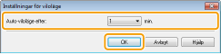 Ange tidsperioden efter vilken enheten ska gå in i viloläge. Du kan välja 1 - 30 minuter.