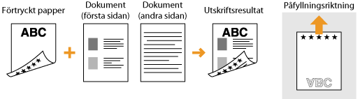 I det här avsnittet beskrivs hur man fyller på papper som redan skrivits ut med rätt riktning och rätt sida uppåt. För en fullständig beskrivning av proceduren för påfyllning av papper i papperslådan eller multiutmatningsfacket, se följande.