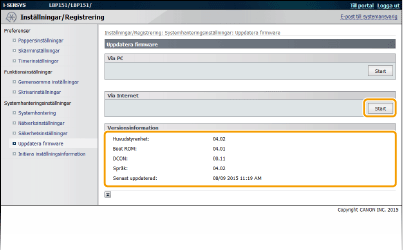 Du kan kontrollera version, etc. för den aktuella fasta programvaran.