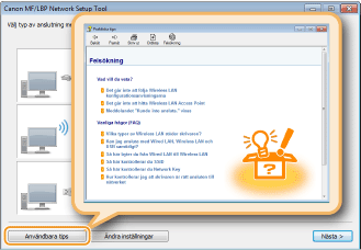 När du byter anslutningsmetod från trådbundet nätverk till trådlöstDu måste avinstallera den installerade skrivardrivrutinen och sedan installera om den. Mer information finns i Installationsguide för skrivardrivrutinen.