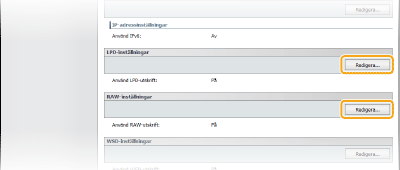 Klicka på [Redigera] i [LPD-inställningar] eller [RAW-inställningar].