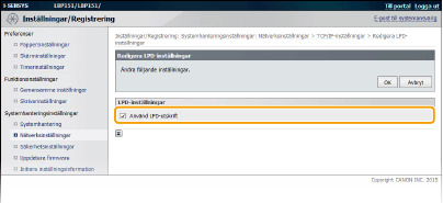 Markera kryssrutan om du vill använda LPD vid utskrift. Avmarkera kryssrutan om du inte vill använda LPD-utskrift. [Använd RAW-utskrift]