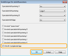 ![]() Tyst utskriftOm du störs av utskriftsljudet kan du sänka ljudet genom att ange tystgående läge. Observera att utskriftshastigheten blir lägre om du skriver ut i tystgående läge.