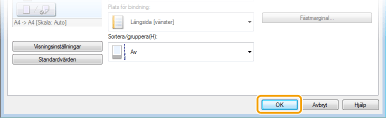 Du kan enkelt och intuitivt ange sidlayout, bindningsplats, etc. på förhandsgranskningssidan. Mer information får du om du klickar på [Hjälp] på skrivardrivrutinsskärmen.
