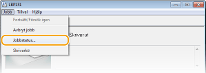 Avbryta från Gränssnitt för fjärranvändningDu kan avbryta utskriften från sidan [Jobbstatus] på Gränssnitt för fjärranvändning. Kontrollera aktuell status för utskriftsdokument