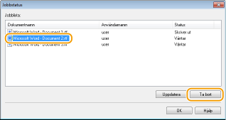 Markera det dokument som ska avbrytas och klicka på [Ta bort].