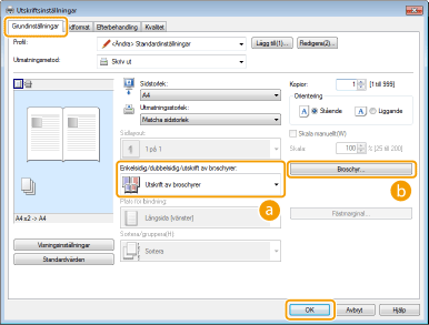 Klicka på [Broschyr] för att ange detaljerade inställningar om det behövs