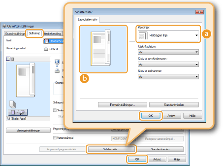Du kan lägga till ramar, till exempel brutna eller dubbla linjer, i marginalerna.