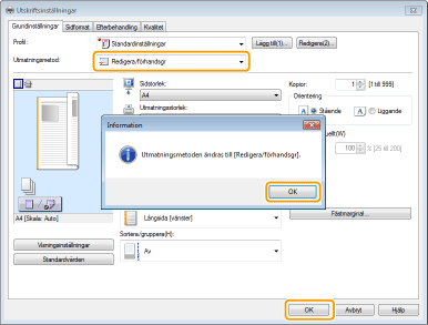 Välj [Redigera/förhandsgr] i [Utmatningsmetod].