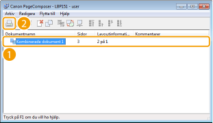 Om du använder Canon PageComposer kan du kombinera flera dokument till ett utskriftsjobb med angivna utskriftsinställningar. Med den här funktionen kan du till exempel kombinera dokument som skapats med olika program och skriva ut sidorna i samma pappersformat.