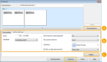 I listan [Dokumentnamn] väljer du det kombinerade utskriftsjobb som ska skrivas ut och sedan klickar du på