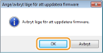 När uppdatering av fast programvara startat kan läget för uppdatering av fast programvara inte avbrytas.