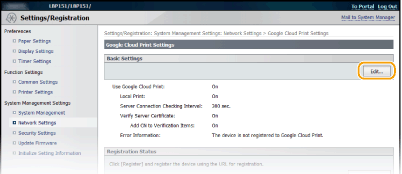 انقر على [Edit] في [Basic Settings].
