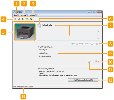* يمكنك تغيير الإعداد الذي يحدد متى يتم عرض نافذة حالة الطابعة تلقائيًا. قم بتغييره من خلال قائمة [خيارات] أو مربع حوار  [تفضيلات: المستخدمون] أو [تفضيلات: المسؤولون] في نافذة حالة الطابعة. لمعرفة التفاصيل، راجع التعليمات. قائمة[تعليمات]