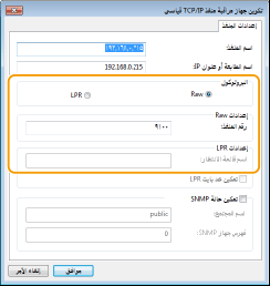 أسفل [نوع البروتوكول]، حدد [RAW] أو [LPR]، وقم بتغيير [رقم المنفذ].