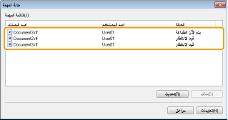 تظهر قائمة بما يصل إلى 5 مستندات، والتي تبين المستندات التي يتم طباعتها أو في انتظار طباعتها.