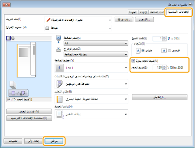 إعدادات التكبير/التصغير في بعض التطبيقات تكون لها الأولوية على تلك الموجودة في برنامج تشغيل الطابعة.