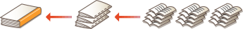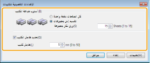 [تقسيم إلى مجموعات]: يطبع في صورة رزم متعددة مقسّمة بعدد الصفحات المحدّد في [ورق لكل مجموعة]. قم بتجليد كل رزمة، ثم قم بتجميعها في صورة كتيب واحد. قم باختيار هذا الخيار إذا كان المستند يحتوي على عدد كبير من الصفحات بحيث لا يمكنك تجليدها جميعها في كتيب واحد.