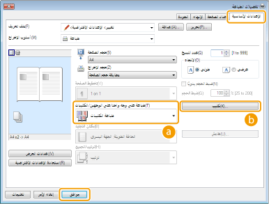 قم باختيار [طباعة الكتيبات] في [طباعة على وجه واحد/على الوجهين/الكتيبات]