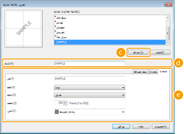 انقر على كل علامة تبويب لتحديد نص أو لون أو موضع طباعة العلامة المائية. لمزيد من المعلومات، انقر على [تعليمات] على شاشة برنامج تشغيل الطابعة.