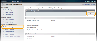 إن تغيير إعدادات الجهاز من واجهة المستخدم عن بُعد يتطلب توافر حقوق الوصول الخاصة بالمسؤول. بعد تسجيل الدخول كمسؤول، استخدم الإجراء التالي لتعيين PIN (كلمة المرور الخاصة بإدارة النظام). تعتبر كلمة المرور الخاصة بإدارة النظام بالغة الأهمية لأمن الجهاز. تأكد من معرفة إدارة النظام فقط بكلمة المرور الخاصة بإدارة النظام.