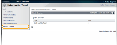 حالة الطباعة لقائمة بيانات المستخدم قمت بتحديدها في نافذة حالة الطابعة لتتم طباعتها لا يتم عرضها في واجهة المستخدم عن بُعد.