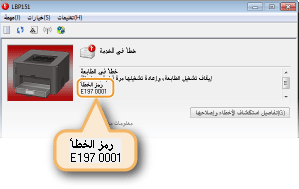 تظهر رسالة الخطأ في نافذة حالة الطابعة عندما تكون هناك مشكلة في معالجة الطباعة، أو عندما لا يتمكن الجهاز من الاتصال، أو عندما تمنع بعض المشكلات الأخرى التشغيل العادي. راجع القائمة التالية لمزيد من المعلومات حول رسائل الخطأ.