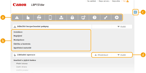 Na této stránce se zobrazují názvy všech témat elektronické příručky.