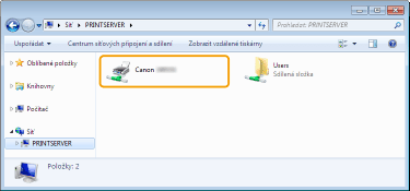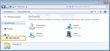 Zobrazení sdílených tiskáren na tiskovém serveru