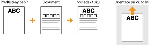 Zde je popis vkládání předtištěného papíru se správnou orientací a požadovanou stranou nahoru. Úplný popis vložení papíru do zásuvky nebo víceúčelovou přihrádku najdete v následující části.