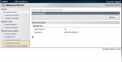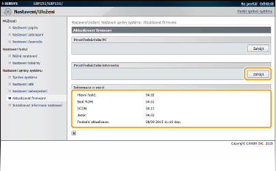 Zkontrolujte, zda zařízení používá nejnovější verzi firmwaru, a v případě potřeby proveďte aktualizaci přes Internet.
