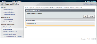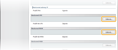 Zaškrtnutím tohoto políčka povolíte tisk pomocí protokolu LPD. Zaškrtnutí zrušte, pokud nechcete tisk pomocí protokolu LPD používat. [Použít tisk RAW]