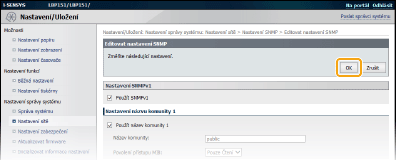 Pokud nepotřebujete nastavení protokolu SNMPv1 měnit, přejděte k dalšímu kroku.