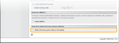 Zadejte nastavení Získávání informací o správě tiskárny.