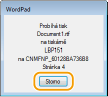 Zrušení z aplikaceU některých aplikací se během tisku otevře obrazovka podobná obrazovce níže. Tisk lze zrušit kliknutím na tlačítko [Storno].