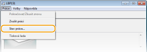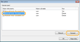 Zrušení pomocí vzdáleného uživatelského rozhraníTisk lze zrušit na stránce [Stav úlohy] ve vzdáleném uživatelském rozhraní. Kontrola aktuálního stavu tištěných dokumentů