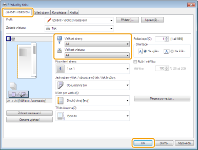 Vyberte velikost papíru v možnosti [Velikost výstupu]