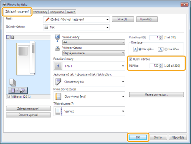Nastavení zvětšení či zmenšení v některých aplikacích mají přednost před nastaveními v ovladači tiskárny.