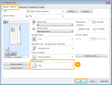 Vyberete-li možnost [Vypnuto], použití třídění výtisků závisí na nastavení provedeném v aplikaci.