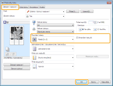 Jednu stránku dokumentu lze vytisknout na více stránek. Pokud například devítinásobně zvětšíte jednostránkový dokument velikosti A4, po vytištění a slepení dokumentu získáte plakát z 9 listů velikosti A4 (3 x 3).