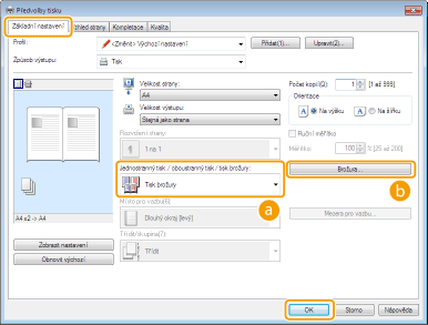 Vyberte možnost [Tisk brožury] v nabídce [Jednostranný tisk / oboustranný tisk / tisk brožury]