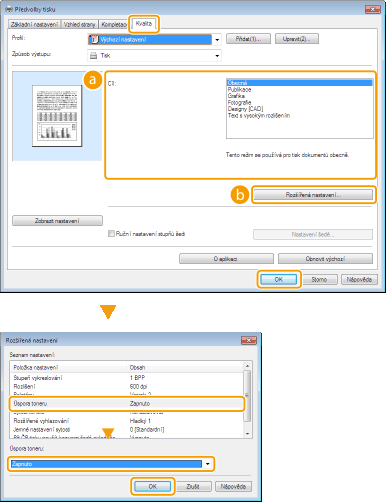 Ovladač tiskárny lze nastavit na tisk s využitím menšího množství toneru.