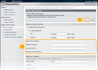Zadejte jméno a potřebné kontaktní údaje správce systému a klikněte na tlačítko [OK].