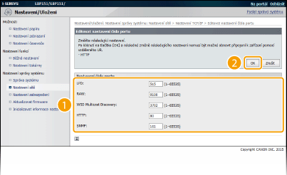 Změňte port používaný protokolem HTTP. Protokol HTTP se používá ke komunikaci přes síť, například při přístupu k zařízení přes vzdálené uživatelské rozhraní.
