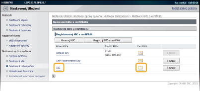 Klikněte na možnost [Název klíče] nebo [Certifikát] pro certifikát, který chcete uložit.
