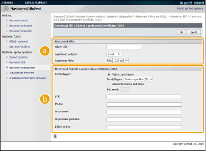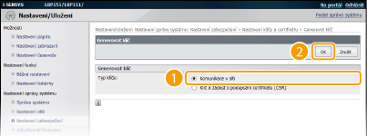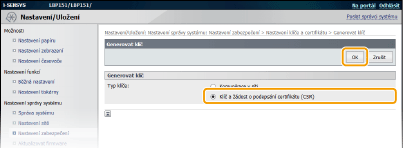 Vyberte možnost [Klíč a žádost o podepsání certifikátu (CSR)] a klikněte na tlačítko [OK].