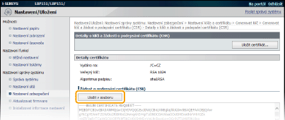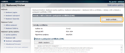 Pár klíčů vygenerovaný žádostí o podepsání certifikátu (CSR) nelze použít, dokud certifikát neuložíte. Jakmile certifikační autorita vystaví digitální certifikát, uložte jej podle následujících pokynů.