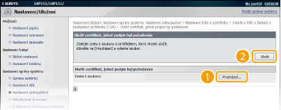 Klikněte na tlačítko [Procházet], zadejte soubor, pro který chcete žádat o podepsání certifikátu, a klikněte na tlačítko [Uložit].